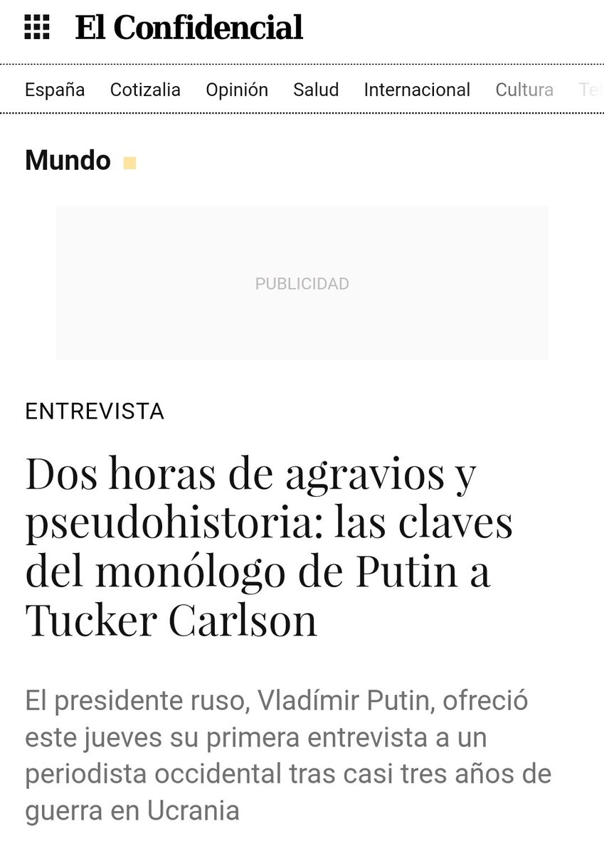 La entrevista de Carlson a Putin vuelve a poner en evidencia que ir a la fuente primaria es algo de Primordial hoy día; si no me creen, vean éste Hilo y saquen ustedes mismos sus conclusiones.