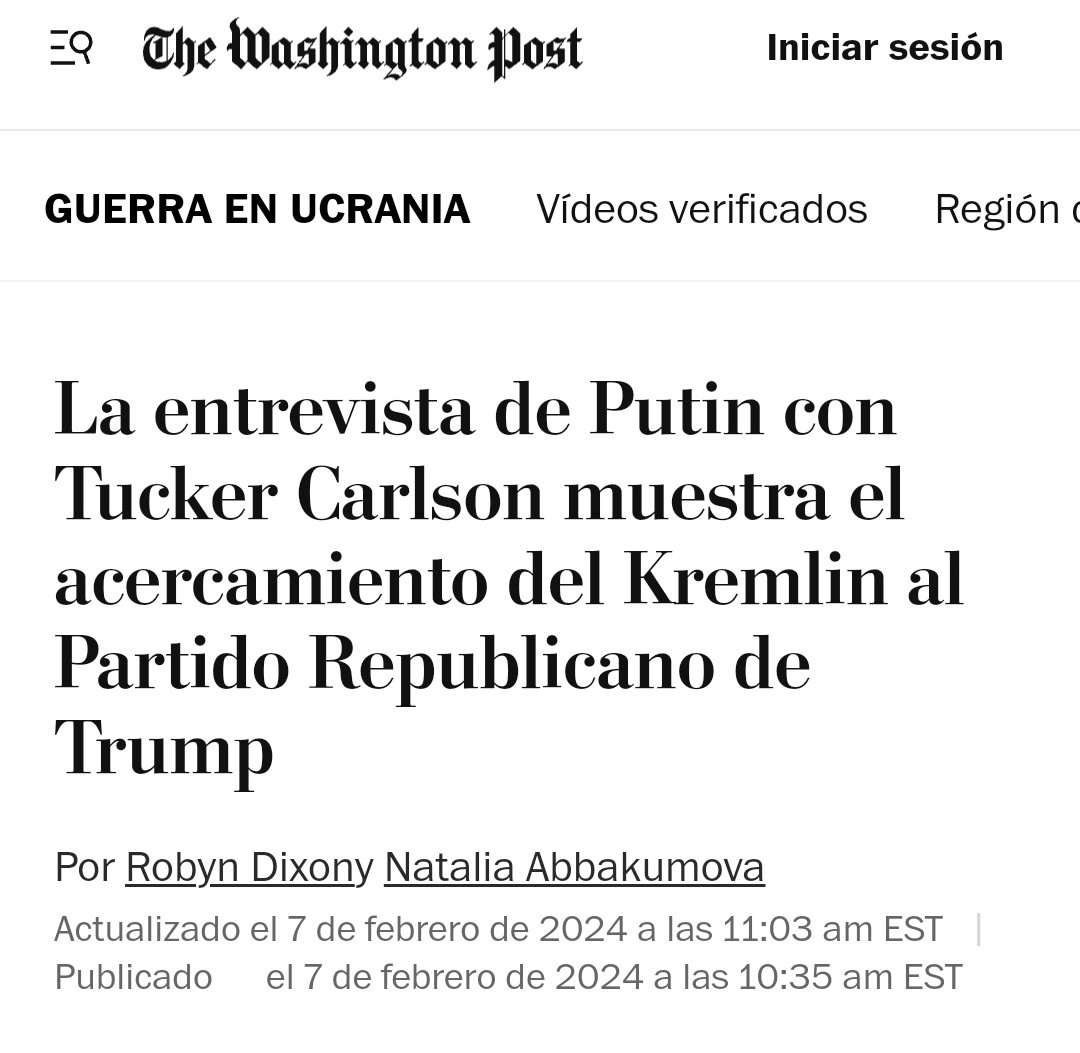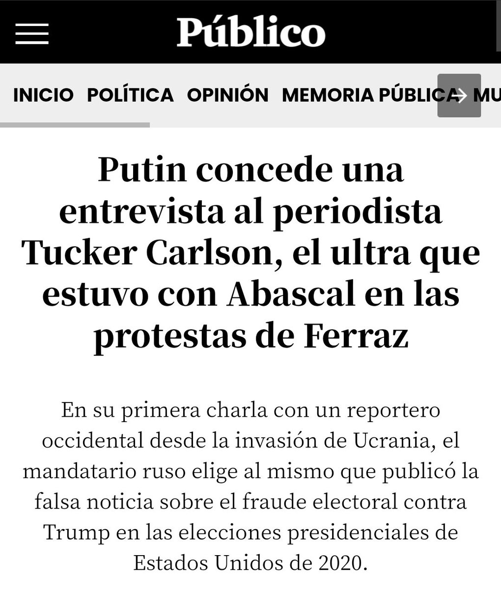 No podía faltar éste clásico. Público centra las conexiones de Carlson con Vox, y el TWP habla de un acercamiento que no se escenifica en la entrevista: