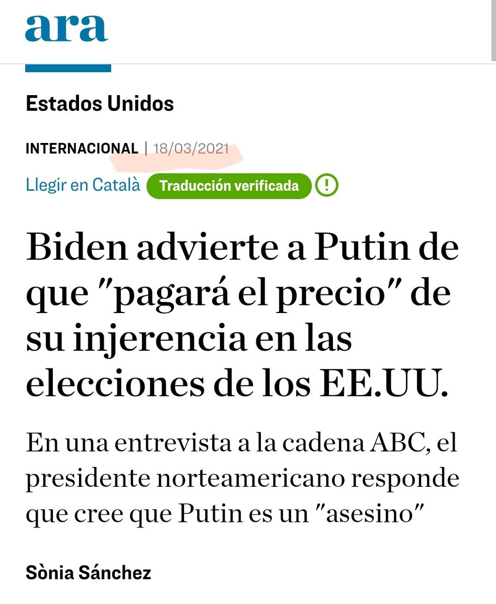 En línea con su estilo macarra y panfletario, va más allá y hace una enmienda a la realidad con éste burdo titular. Putin habla de Historia, pero también de economía, China, el Orden Mundial, de los acuerdos de paz de Estambul frustrados por Boris Johnson...⬇️
