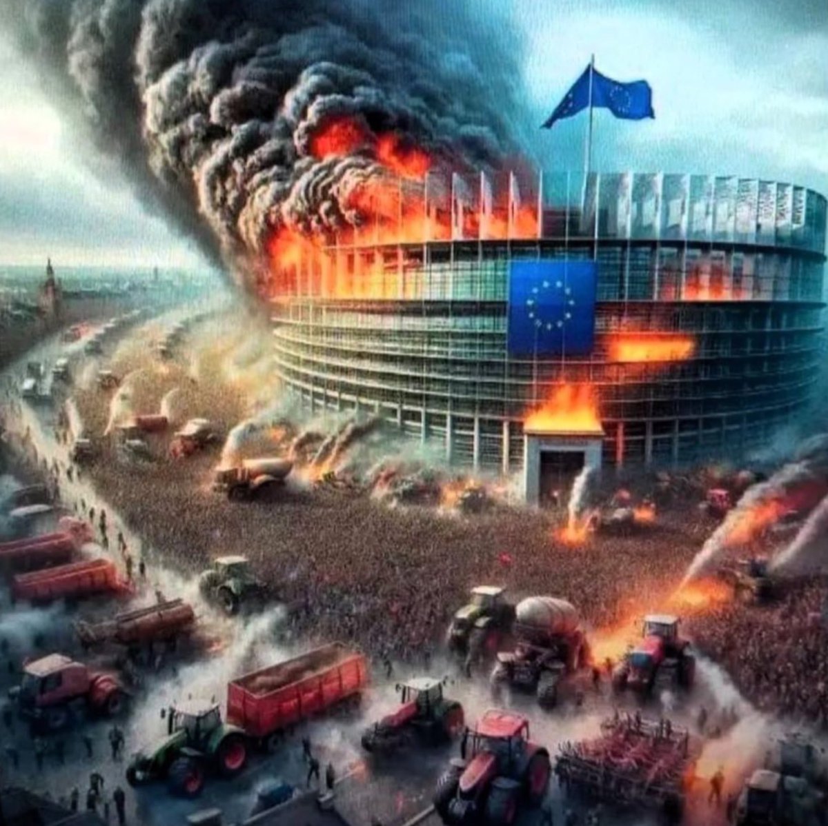 ayuntamientos bañados de estiércol, paros y manifestaciones masivas colapsan Europa. El Sector Agrario ha declarado la guerra a la UE.