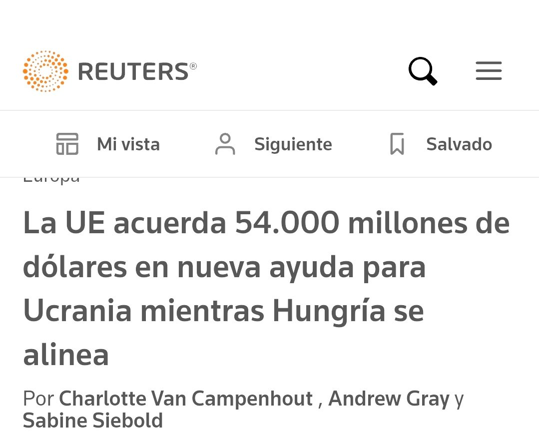 La UE aprobó ayer otro paquete de 54000 millones a Ucrania con lo que el total ronda los 140000 Mill.$ sin contar partidas que ha título individual han enviado otros países.