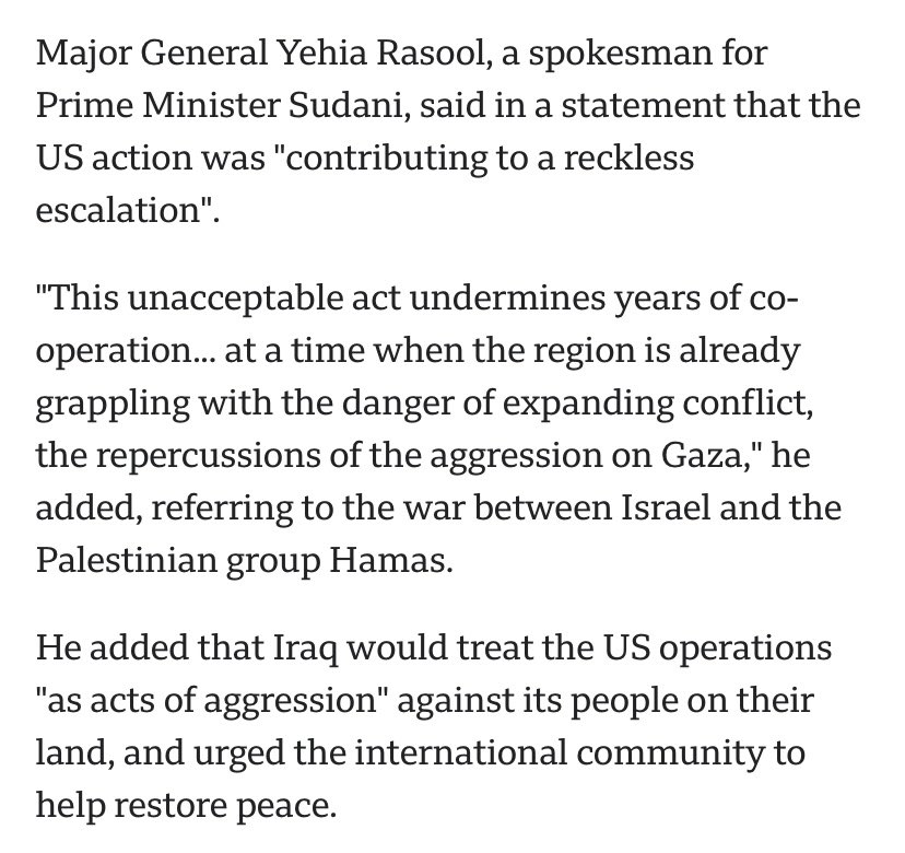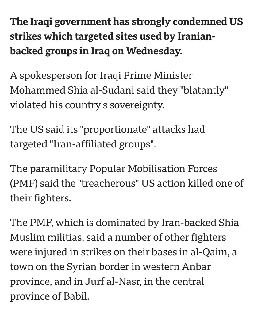 2) From the article. Pay attention to that PMF group. We’ll come back to that later. For now, PMF has attacked US troops defending Iraq. And Iraq is angry because the US killed ONE of these terrorists. So is Iraq is a military commitment we should keep?! This is insane.⬇️