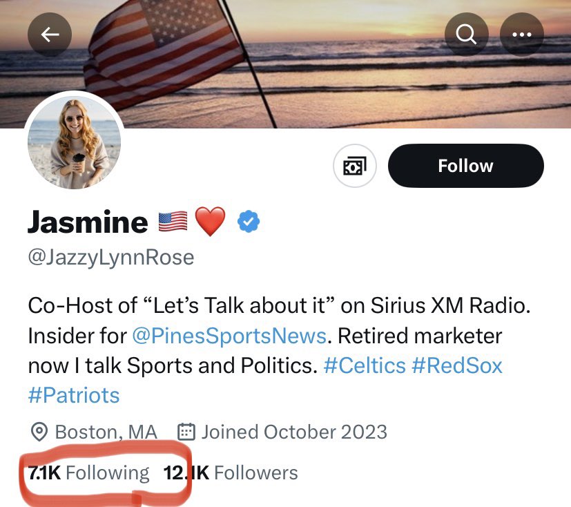 3) A Sirius radio co-host. Retired marketer. That’s interesting. Someone who knows how to sell stuff. Like Trump. “Is Biden letting you down? Try the new Trump!” But I was curious to see who she’s following.⬇️