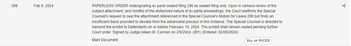 NEW: In urging Judge Aileen Cannon to reconsider two orders that would, among other things, reveal the names of two dozen people who have participated in the Mar a Lago investigation, the Special Counsel's office filed a document available to Cannon and only Cannon. 1/