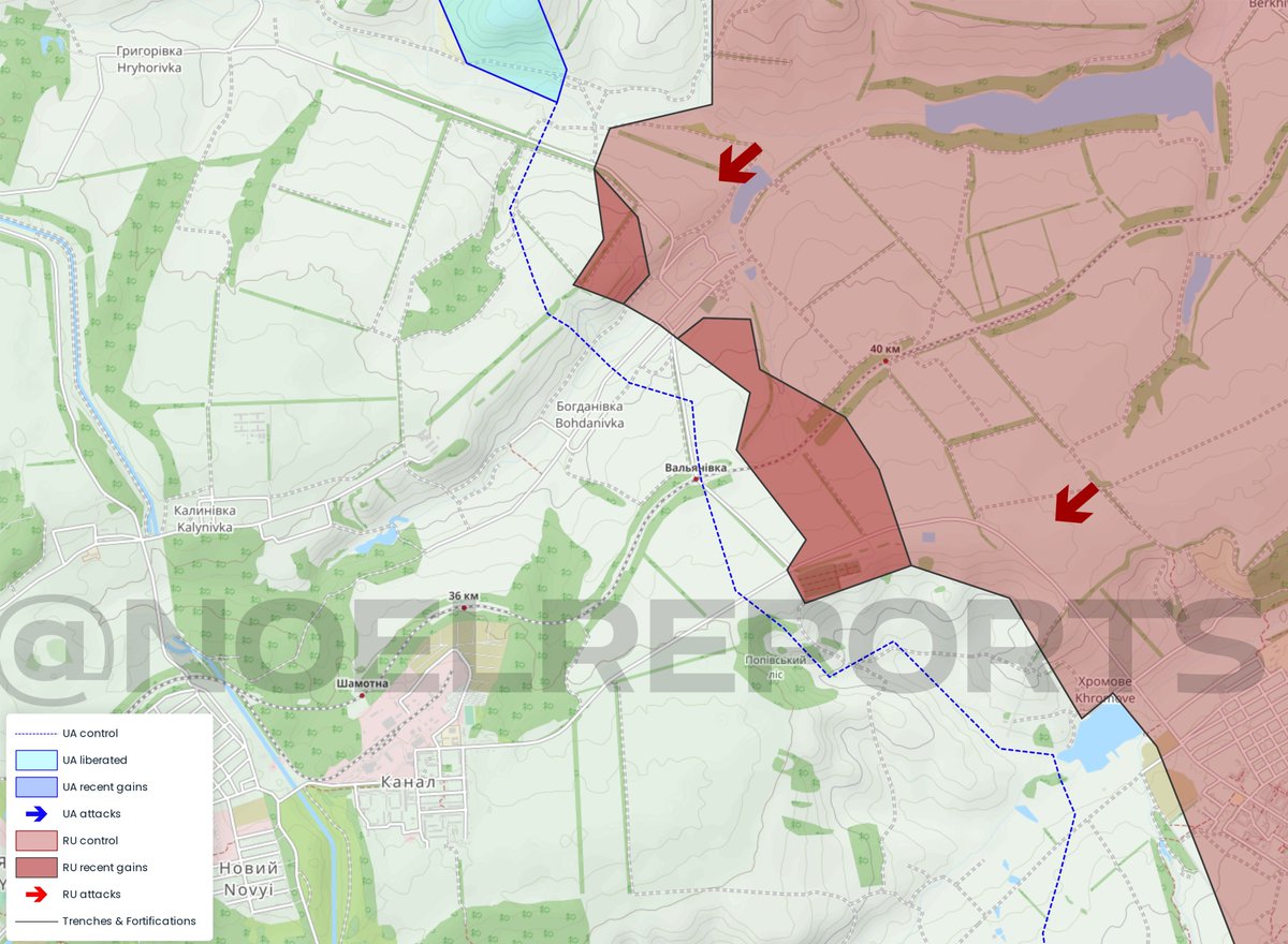 ➡️Russian forces have taken control over more area S/SE of Bohdanivka while also (re)gaining control over an important treeline north of the village. Ukrainian forces have retreated south of the cemetary near the O0506.