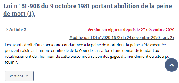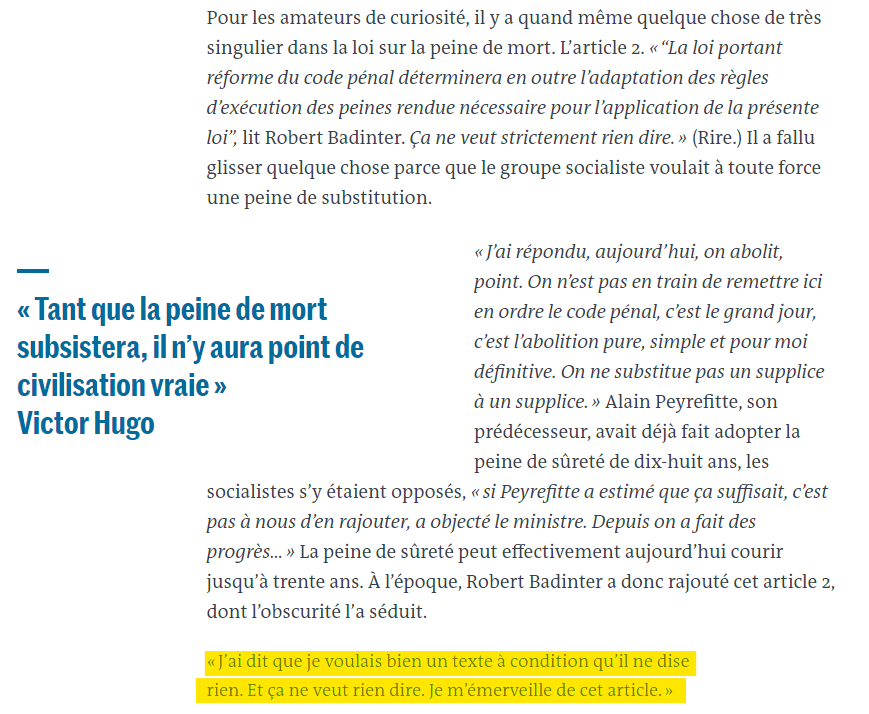 Mon article de loi préféré, c’est l’article 2 de la loi d’abolition de la peine de mort de 1981. Pas le 1, le 2. Le voici, vous me dites si vous y comprenez quelque chose.