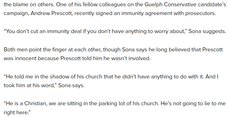 According to political 'fixer' David Wallace, both Michael Sona and Andrew Prescott (crown witness) from the robocall scandal were affiliated with the Plymouth Brethren Church.