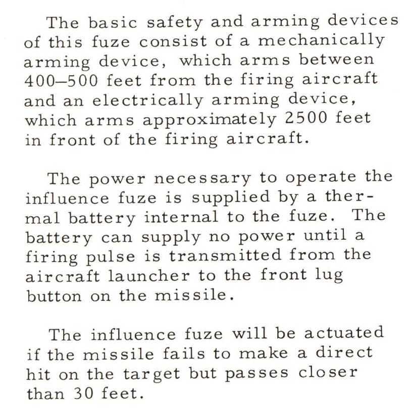 Another piece of AIM-4 slander that I find amusing in context is the lack of a proximity fuse. This, inevitably, is comparing the AIM-4 to the AIM-9B/E/D/G of the pre-70 Vietnam air war.