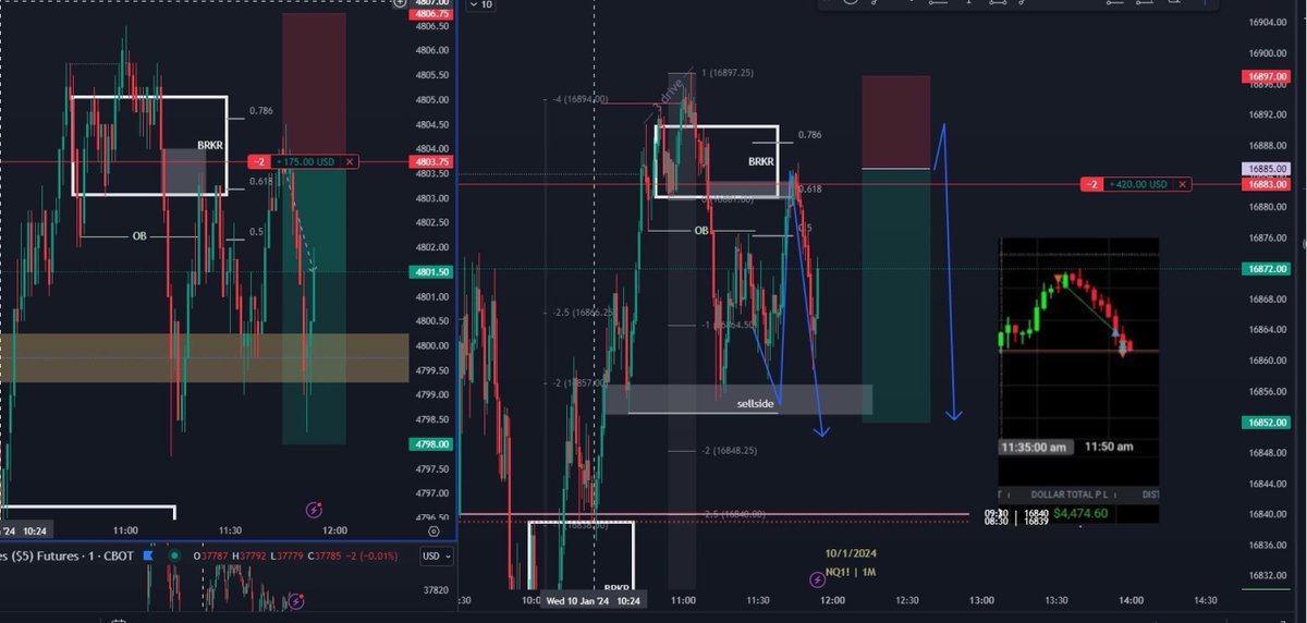 Consecutive candle breakers demonstrate displacement, effectively sweeping liquidity and initiating a reversal, supported by hourly FVG and the multiple failed drives.