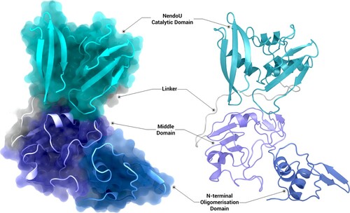 "NendoU from SARS-CoV-2 is responsible for the virus’s ability to evade the innate immune system by cleaving the polyuridine leader sequence of antisense viral RNA" cell.com/structure/full…