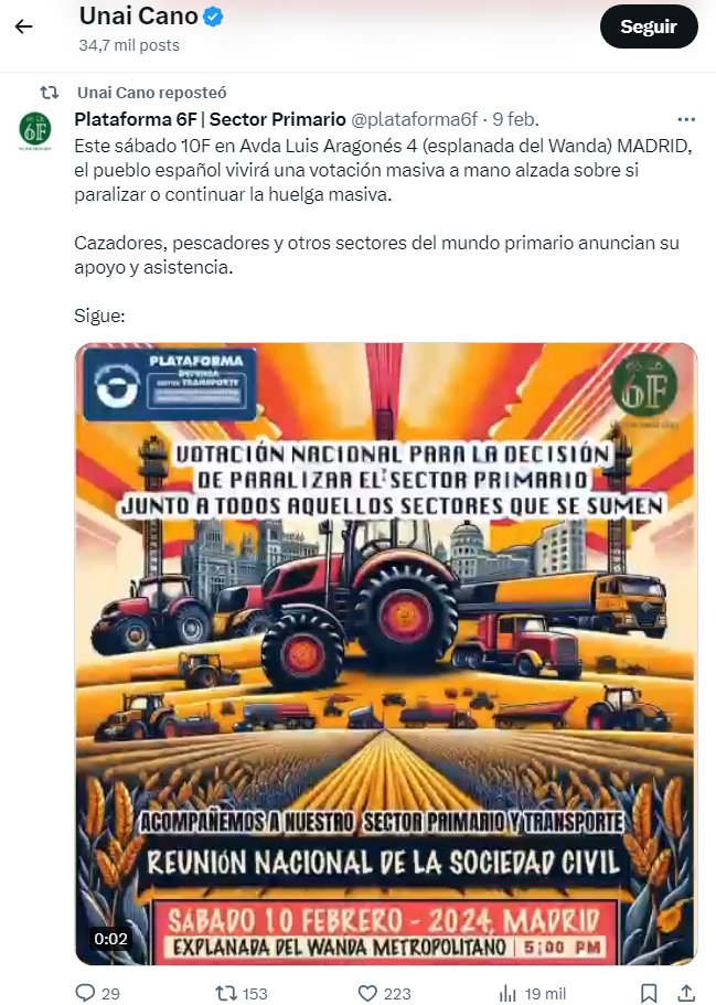 Ya en mayo intentaron paralizar el país promocionado por varios medios de derechas y el propio Iker Jiménez que llevó a su líder Victor Viciedo, franquista de VOX, como representante del campo. Fue un fracaso surrealista. En este hilo hago un resumen.