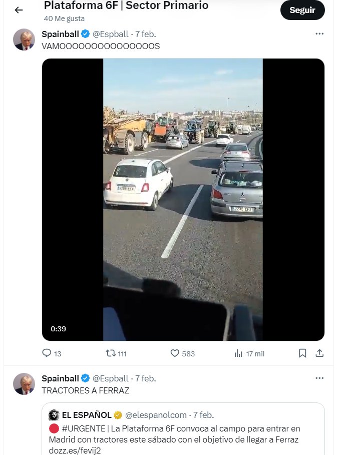 Al ver que el 6F funcionó se metieron en primera línea Manolín, el abogado de Desokupa, el policía de VOX, Alvise y Vito Quiles para adueñarse de las movilizaciones del campo y del transporte, sin que ninguno de ellos pertenezcan a estos sectores.