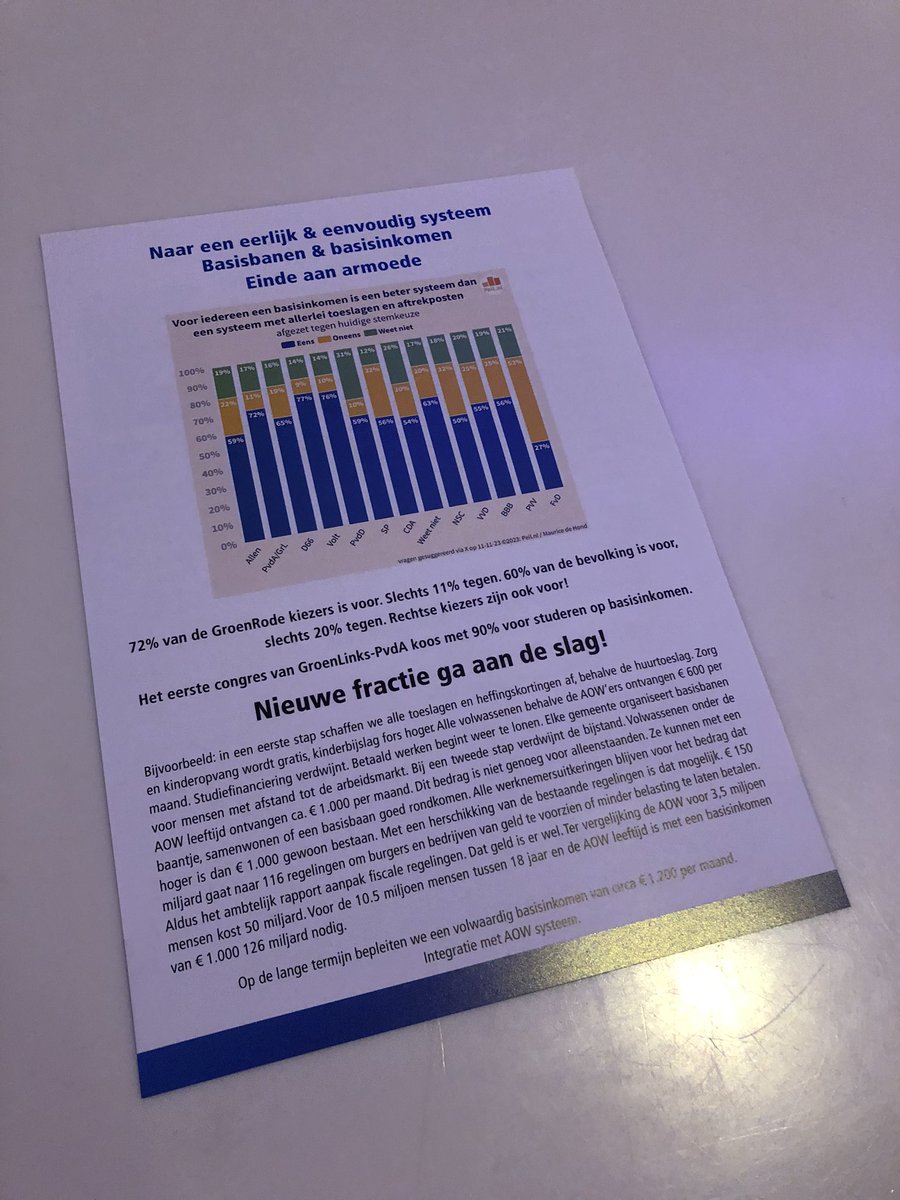 We krijgen een folder bij de ingang. Nu al een oplossing: het basisinkomen.