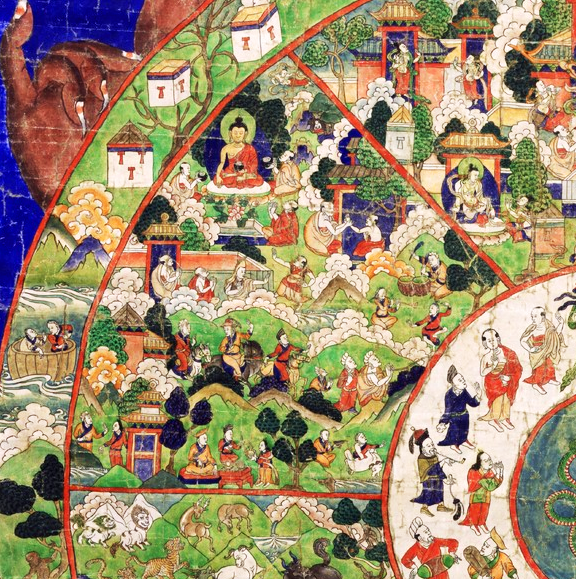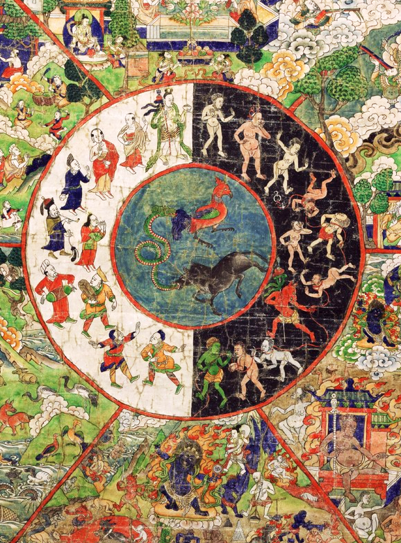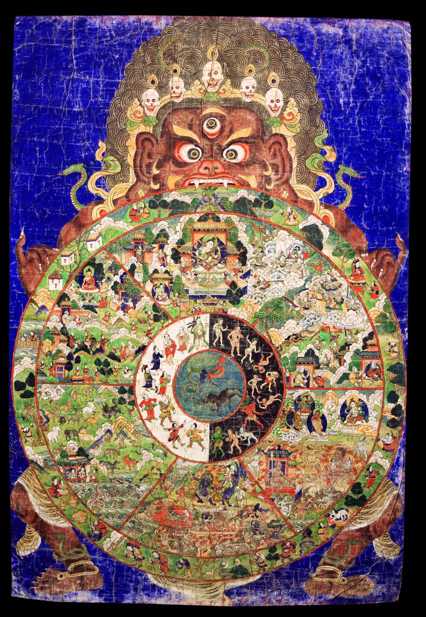 i really love the bhavachakra. although i obviously do not subscribe to buddhism or reincarnation, this is one of the all time ultimate illustrations. the entire buddhist cosmology is basically contained in one image, right here: