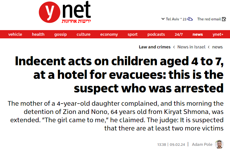 rape is such a common occurrence in Israeli society, that even Western media used to report on it, noting that Israel has become a safe haven for pedophiles. And the pedophiles are now raping the children and women who went to Tel Aviv after October 7