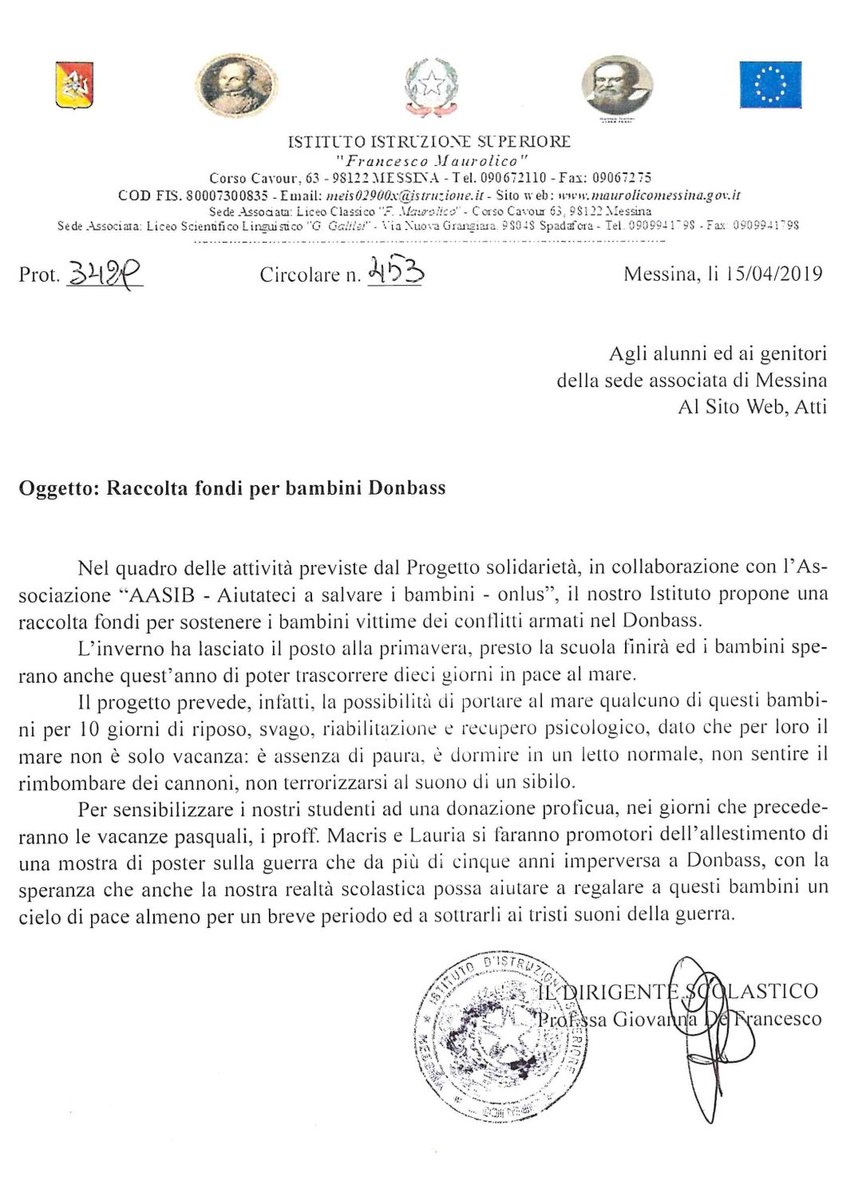 Nel 2019 nel liceo Maurolico di Messina, il professore Macris ha anche allestito una mostra sulla "Guerra nel Donbass", per poi raccogliere fondi da mandare nei territori occupati tramite AASIB, un'associazione apertamente filorussa. Il tutto in una scuola pubblica italiana. 3/9