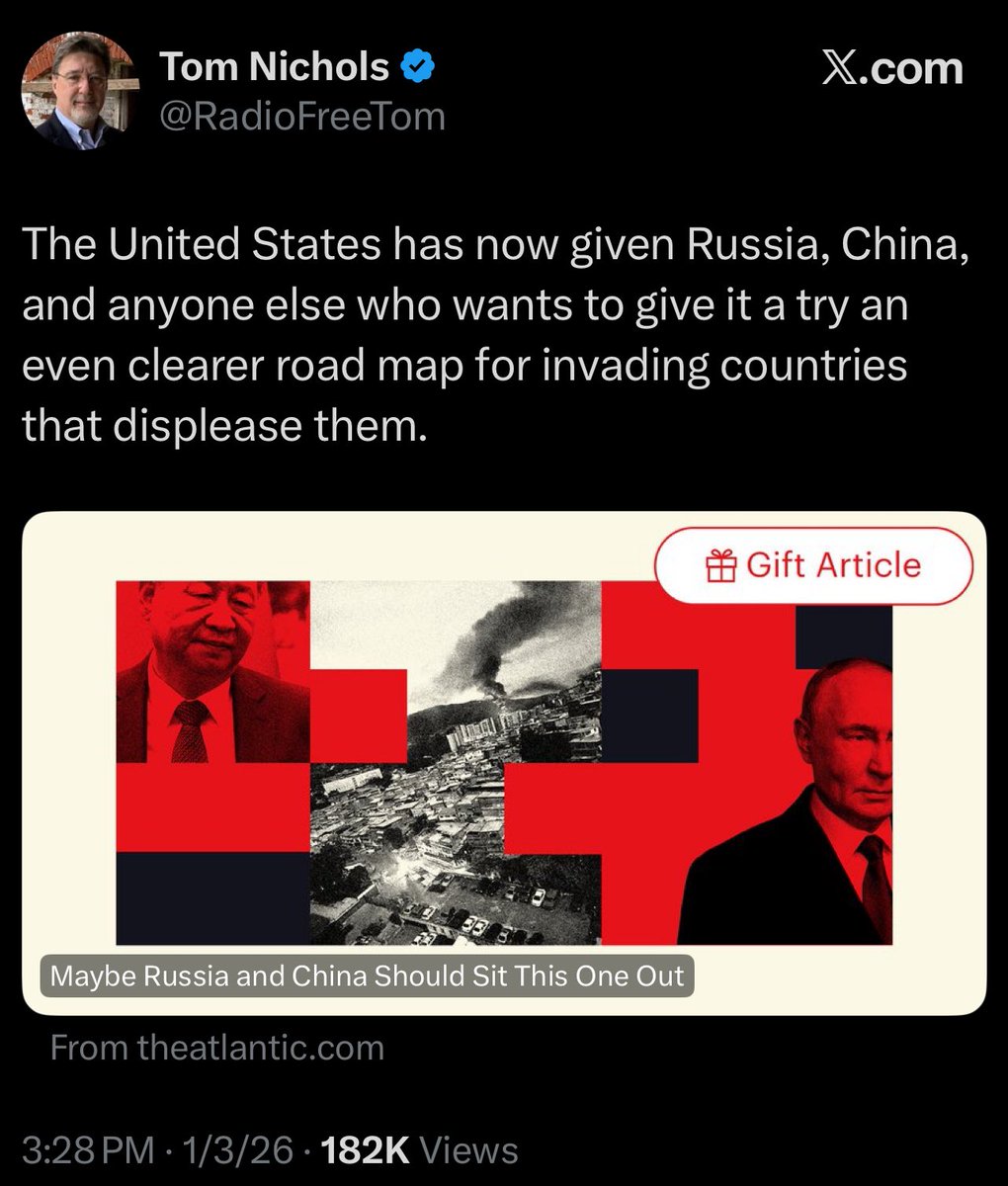 My favorite tweets today have been from the people who’ve asked: What’s to stop Iran or China or Russia now from flouting the international order??
