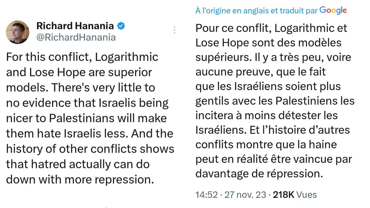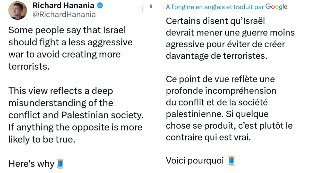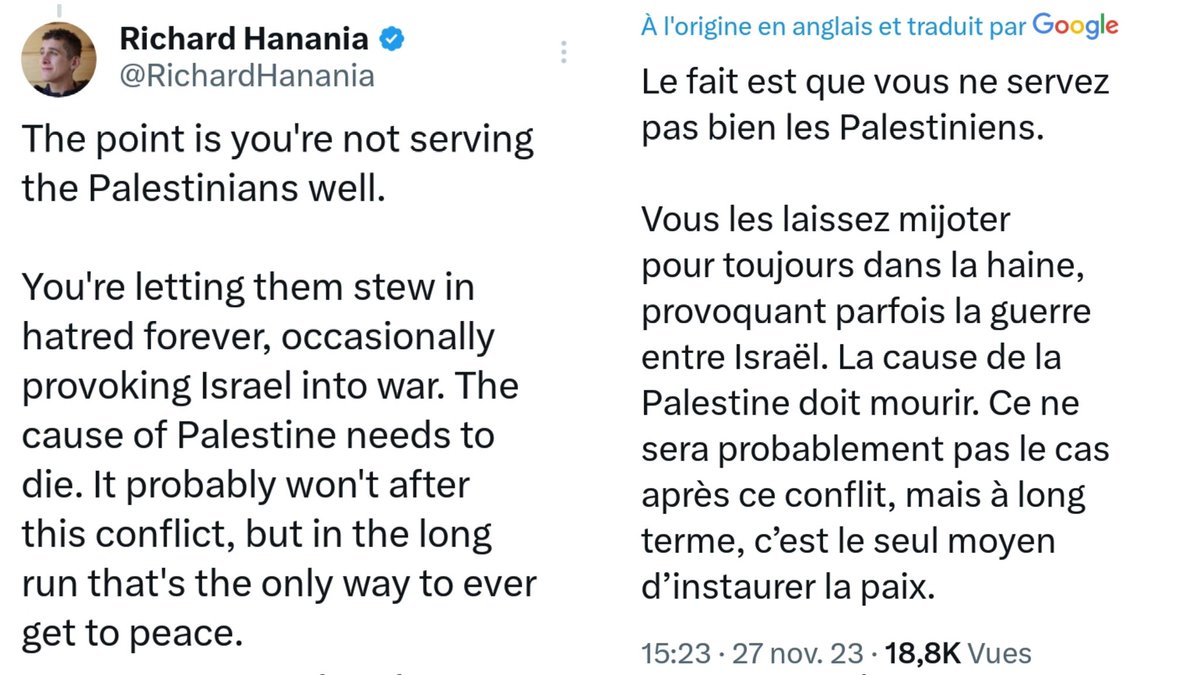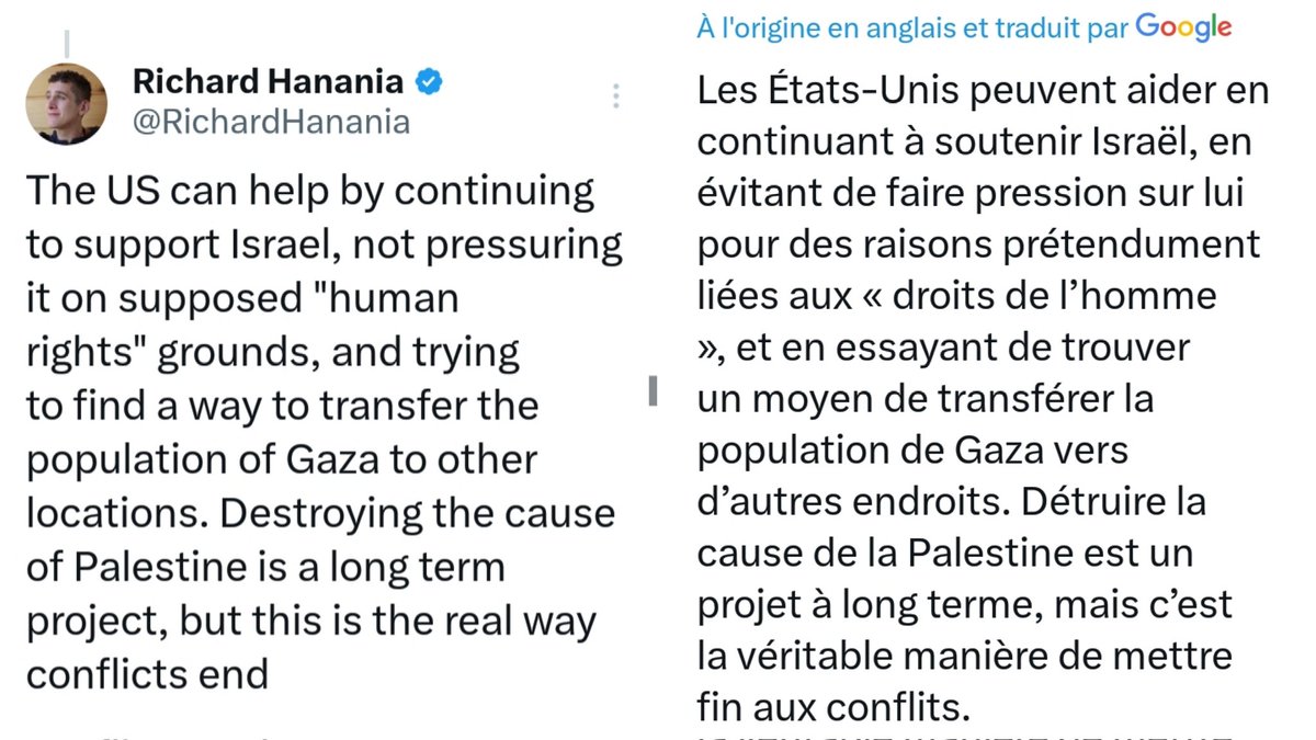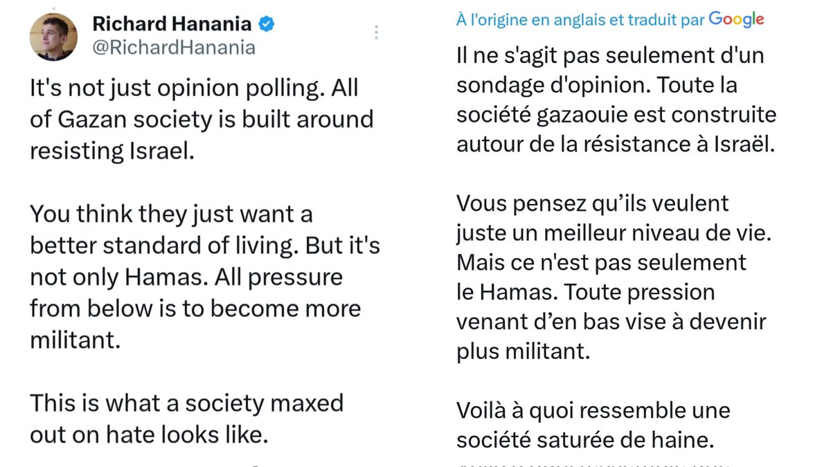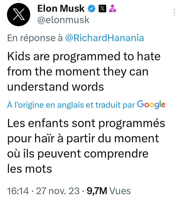 Et t'as Elon Musk qui écrit ce tweet. Mais au sujet des Palestiniens. Il n'a rien d'autre à dire. Visionnez la vidéo en dernier tweet de ce fil. Et redîtes-vous bien ça : le patron de X a écrit ce tweet à l'endroit des Palestiniens, après avoir lu tout le fil de monsieur Hanania.