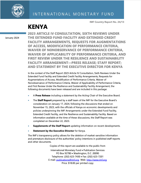 IMF has published its Staff Report following the 6th Review of Kenya's now US$4.43 billion programme.