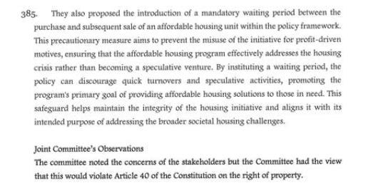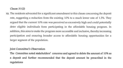 There was a proposal for provision of a mandatory waiting period between the purchase & sale of an affordable housing unit to address the risk of quick turnover & speculative ventures, it has been shot down by the Committee. I am a little surprised by this one