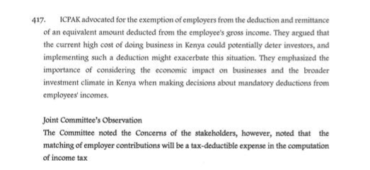 The Committee has endorsed a proposal to clean up the potential conflict between Sec4(2b) targeting non-payslip Kenyans & Sec5 which provides for employer matching. An amendment to be made exempting any business compliant with Sec5 from the obligations of 4(2b)