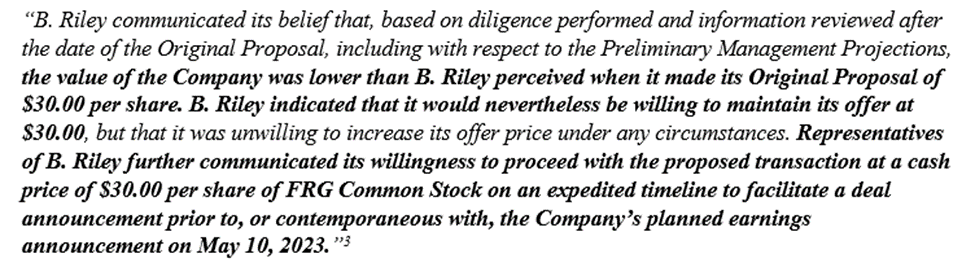3/ Despite stating that it didn’t believe $FRG was worth $30/share, $RILY was willing to proceed with the transaction if it could be completed on an expedited timeline. Why would $RILY blatantly breach its fiduciary duty to shareholders to rush this shitty deal to completion?