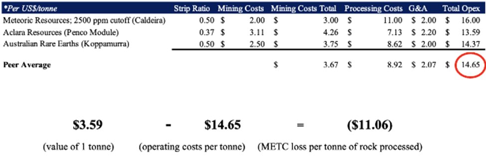 3/ Based on data provided by $METC, we estimate at best its revenue will be $3.59/t for the project. Processing costs alone for ionic clay projects are estimated at ~$7/t. Add in capex, mining costs, G&A, and delivery and this project is underwater