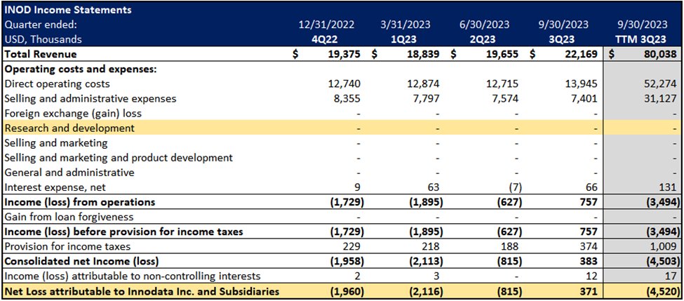 All numbers above are from $INOD's 3Q23 earnings press release (), its 3Q23 10-Q () and previous SEC filings.