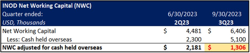 - 3Q23 NWC: $6.4m ($5.1m cash held overseas leaves only $1.3m of NWC available to the US parent co.)