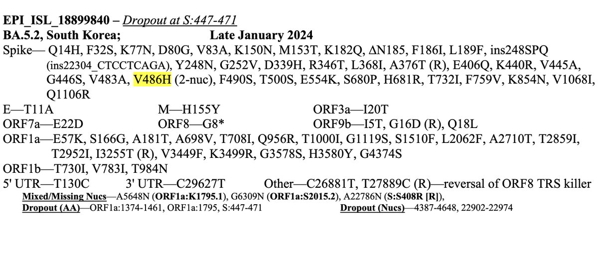 • S:V486H—Very rare 2-nuc mut. Looks un favorable on the @jbloom_lab/@bdadonaite spike-mutation tool in XBB background, but this spike is its own beast & it could act differently in this context.