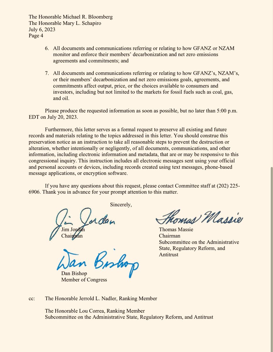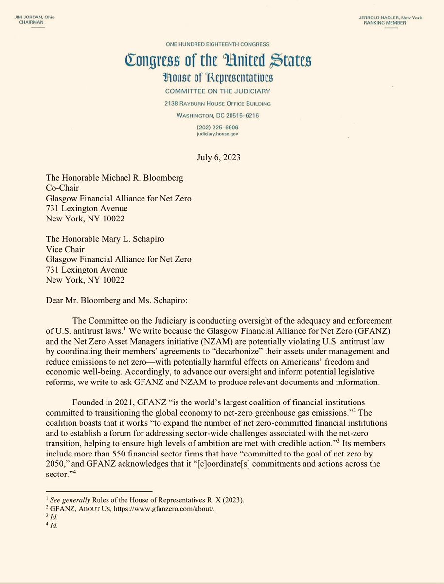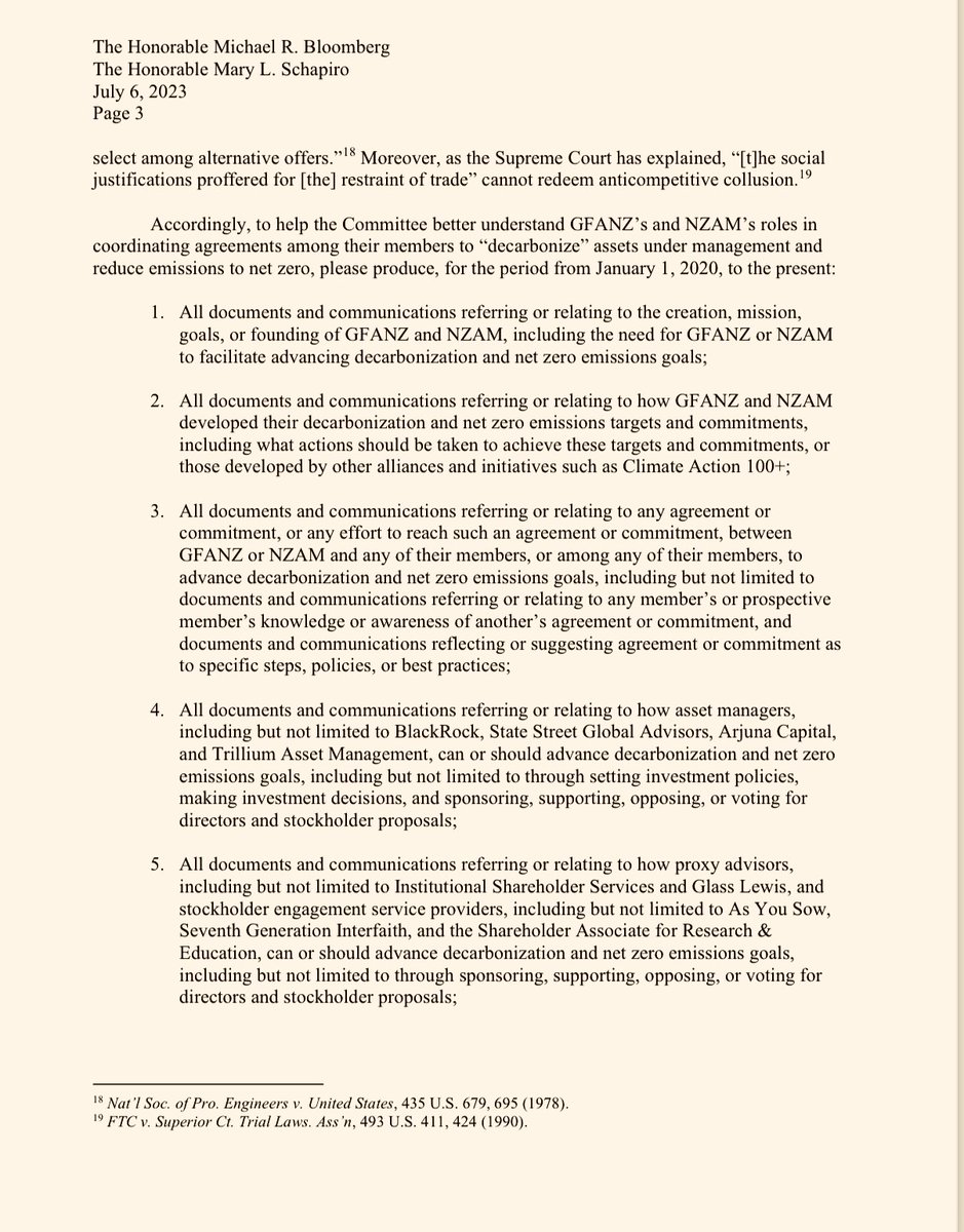 .@Jim_Jordan, @RepDanBishop, and I warned these companies that their ongoing efforts "coordinating their members' agreements to ‘decarbonize’ their assets under management and reduce emissions to net zero" were potentially illegal under the Sherman Act.