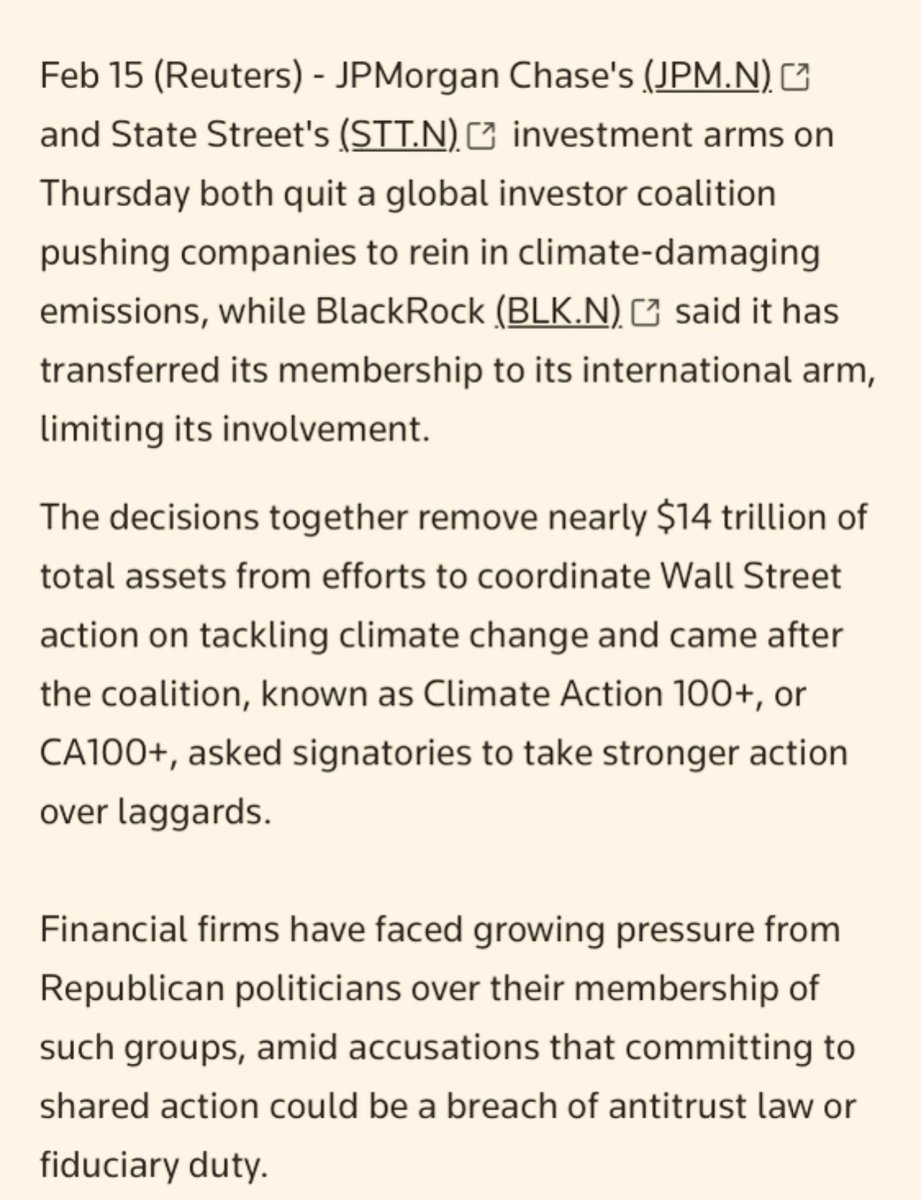 After receiving our letters and document preservation requests, @jpmorgan and @statestreet quit the Climate Action 100+ coalition pushing net-zero goals.