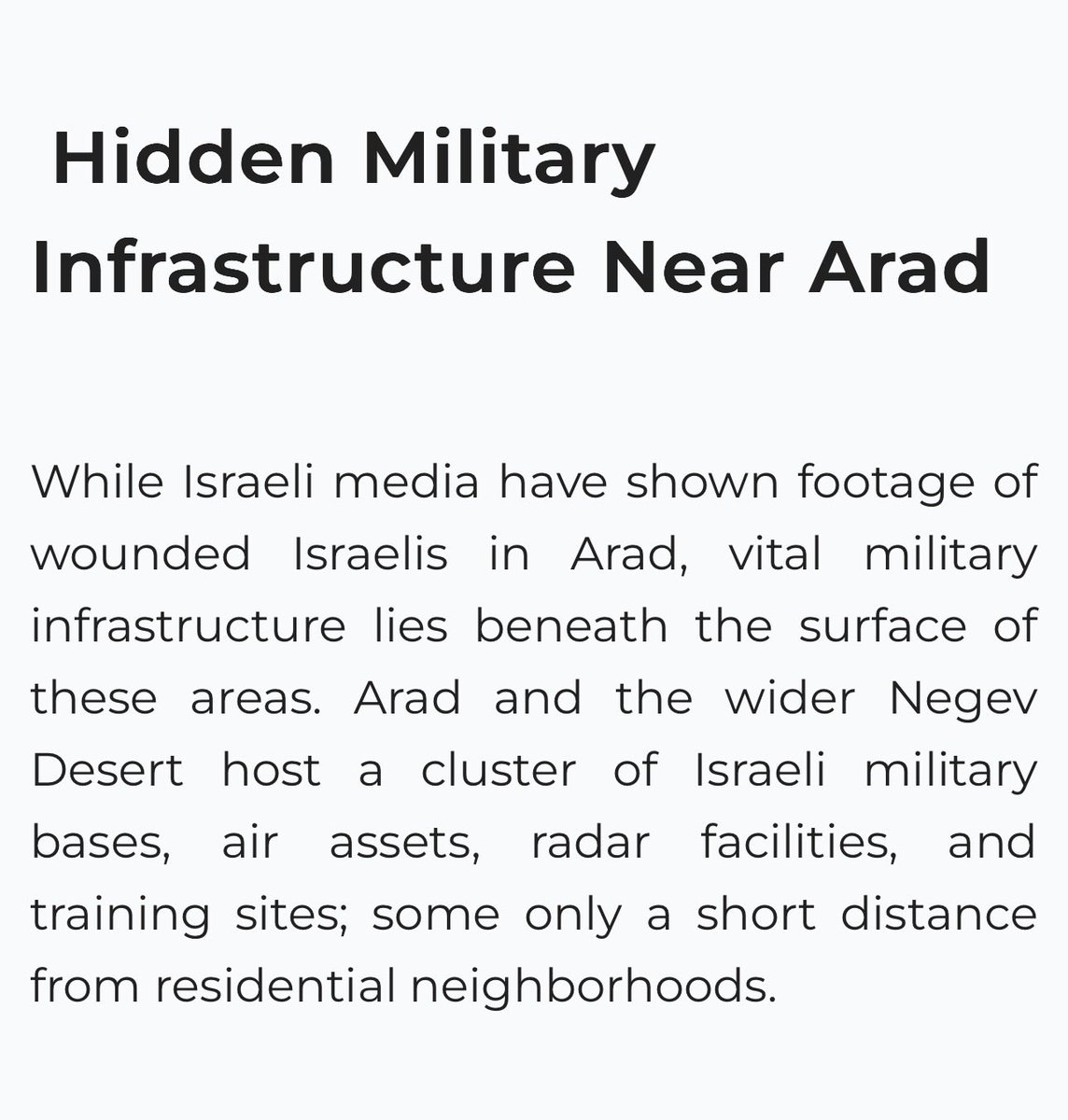 Just like they did with those killed and captured during the Nova festival, they are trying to appeal to the world by showcasing the harm caused to “civilians” and residential infrastructure. This of course obscures the fact that all of “Israel” is a genocidal settlement colony, but it also conceals the likely intended targets of Iran’s missiles in Dimona and Arad, where many residents are not merely innocents caught in the crossfire but active agents in the research and production of the weapons used to commit war crimes. And in the case of those not directly involved in the state war machinery, one could easily point to the fact that the Israeli government does what they accuse everyone else of: constructing their Military facilities right next to or directly beneath their noncombatant population, aka hiding behind human shields. (3/4)