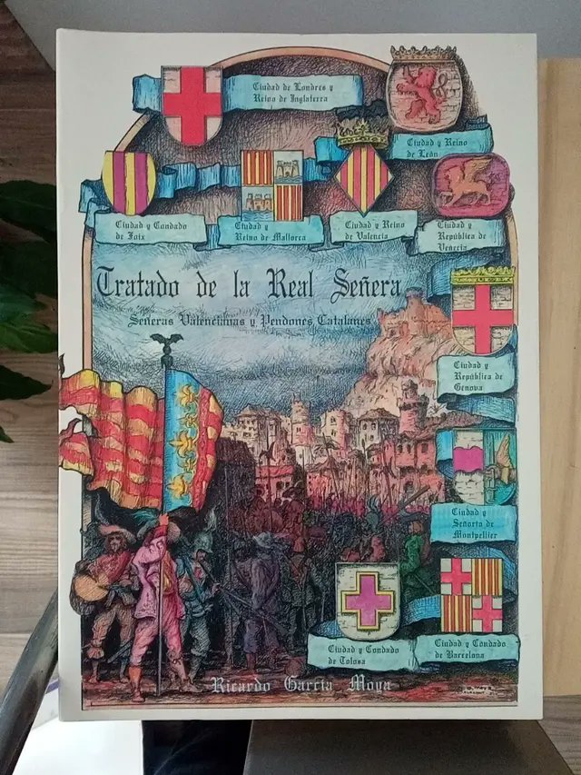 “catalana” tiene un origen castellano. García Moya publicó un espectacular Tratado sobre la historia de la señera valenciana en 1993, también 7 años antes que Riquer) donde abunda en la mentira de la señera catalana. Las 4 barras fueron robadas a Aragón en el siglo XIX