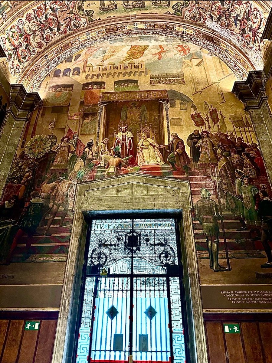 La brutalidad nacionalista catalana le ha llegado ahora a los Reyes Católicos y a Colón. En su momento ya denuncié la destrucción del escudo de Felipe V en la puerta del @parlamentcat. Ahora, en la @gencat y con la excusa de que la pintura es de la época Primo de Rivera.