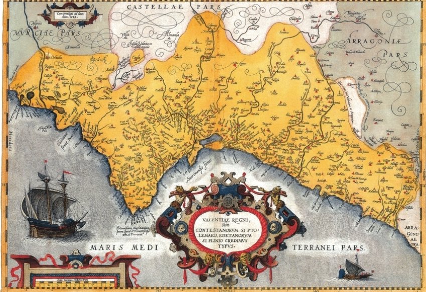 Para empeorarles la digestión (lo siento), vean el mapa de fondo de mi perfil y que ahora les amplio: es el del Reino de Valencia elaborado por Abraham Ortelius en 1584 y miren el lado derecho (superior e inferior) y verán Cataluña. Aún no aparece en los mapas de entonces.