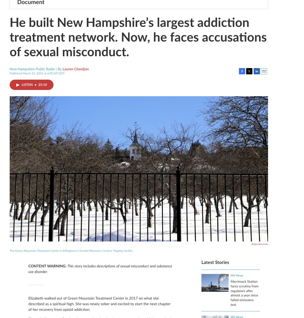 Multiple attempts to take down accusations of sexual misconduct by a founder of a New Hampshire network of addiction clinics.