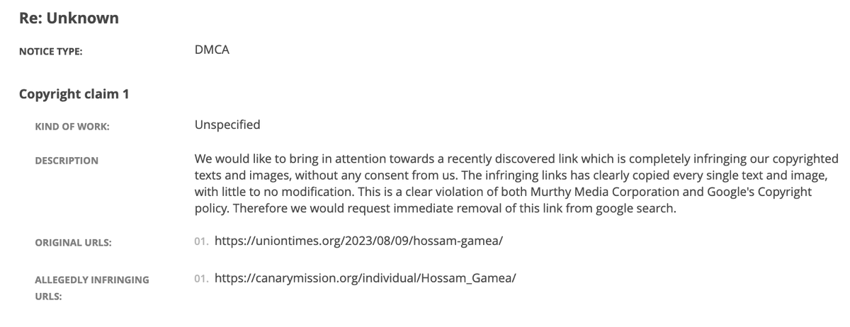 A number of attempts to takedown a report alleging a student is an antisemite.