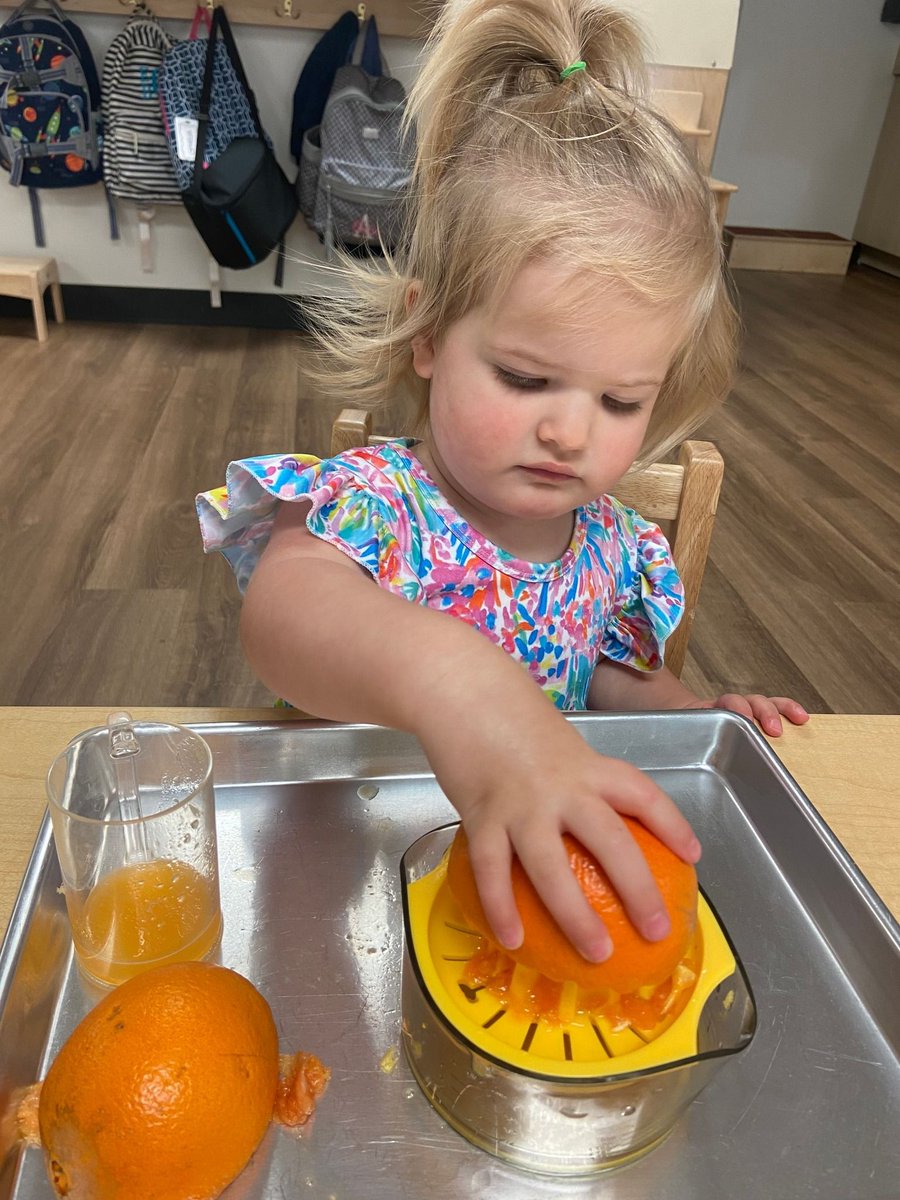 1. The Montessori juicing activity is carefully planned around a precise series of steps.