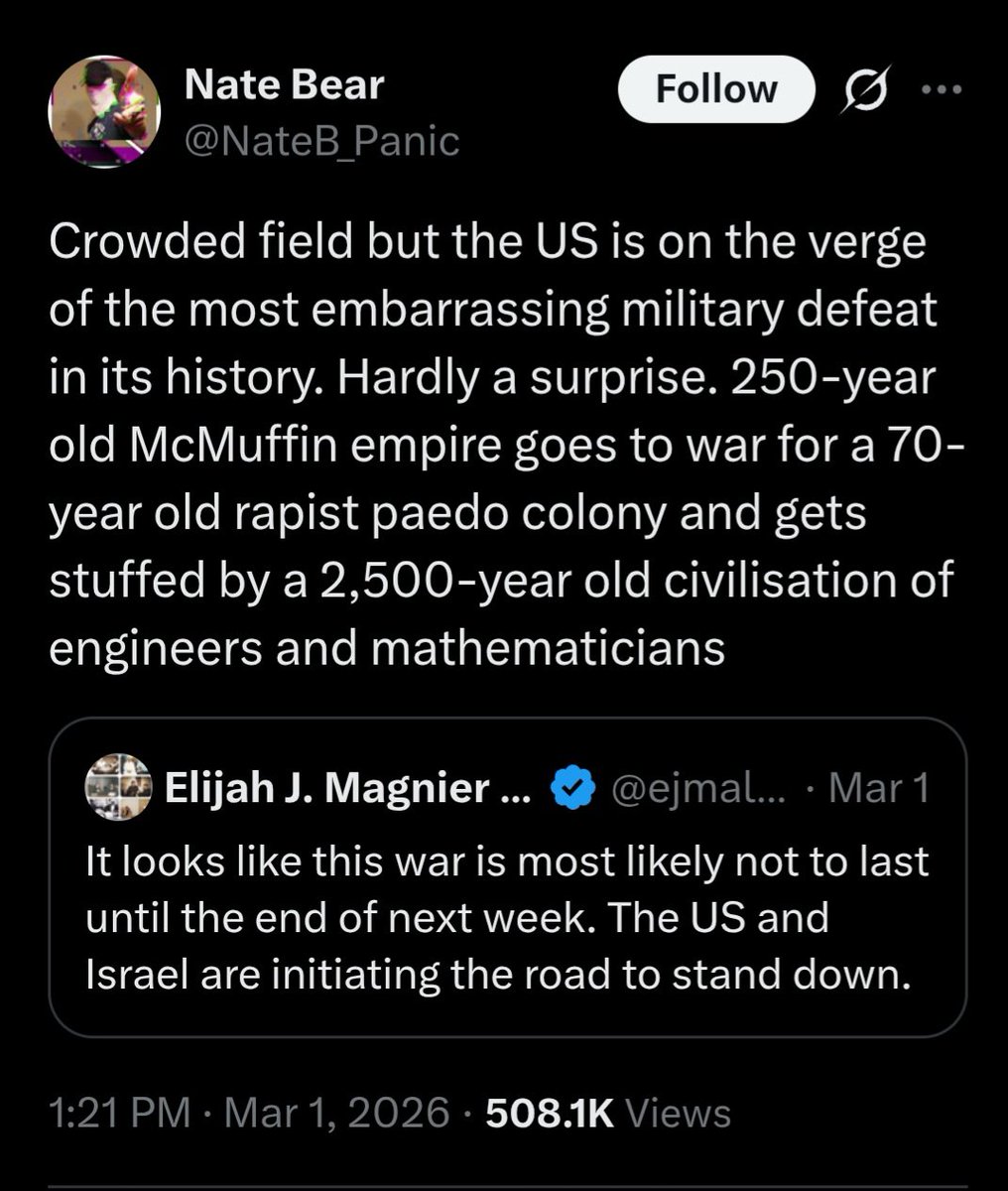 I can feel a few of my followers quivering rn, cries of "SHITLIB, SHITLIB" in their gullets