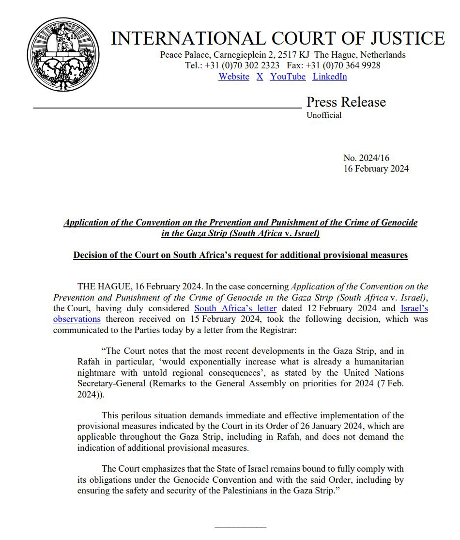 I see people saying “well Israel is not going to abide by these measures” and okay, fair enough…but that also means it wouldn’t abide by any other provisional measures either.