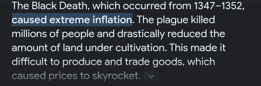 If you go back and study the history of the Black Death, you'll find that inflation surged rapidly and remained high for decades. The plague killed too many people, and those who survived demanded much higher wages, pushing inflation up.