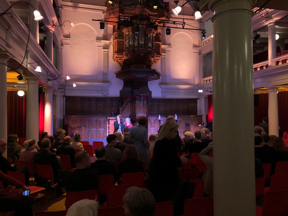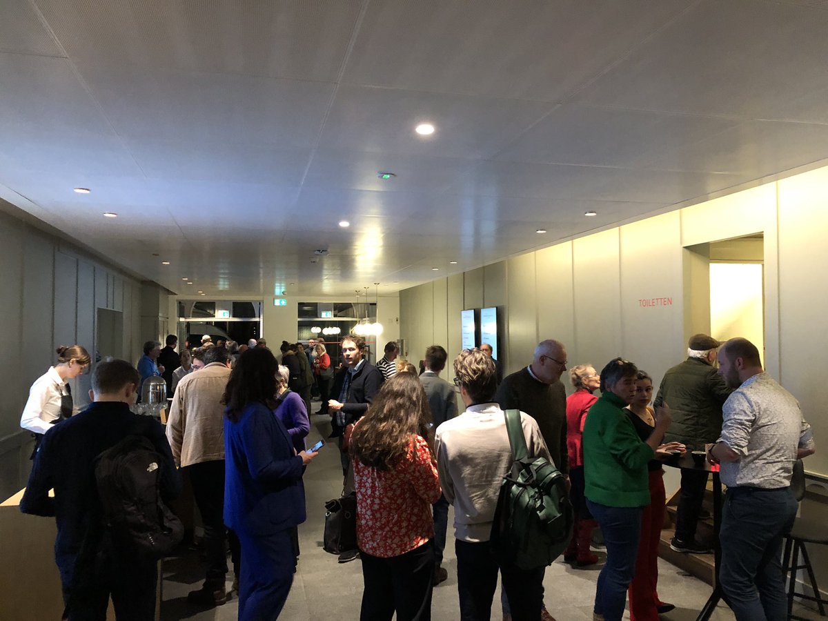 Het is druk. Een rij buiten. Zoals ik al zei: lezingen van Timmermans doen het altijd ontzettend goed.