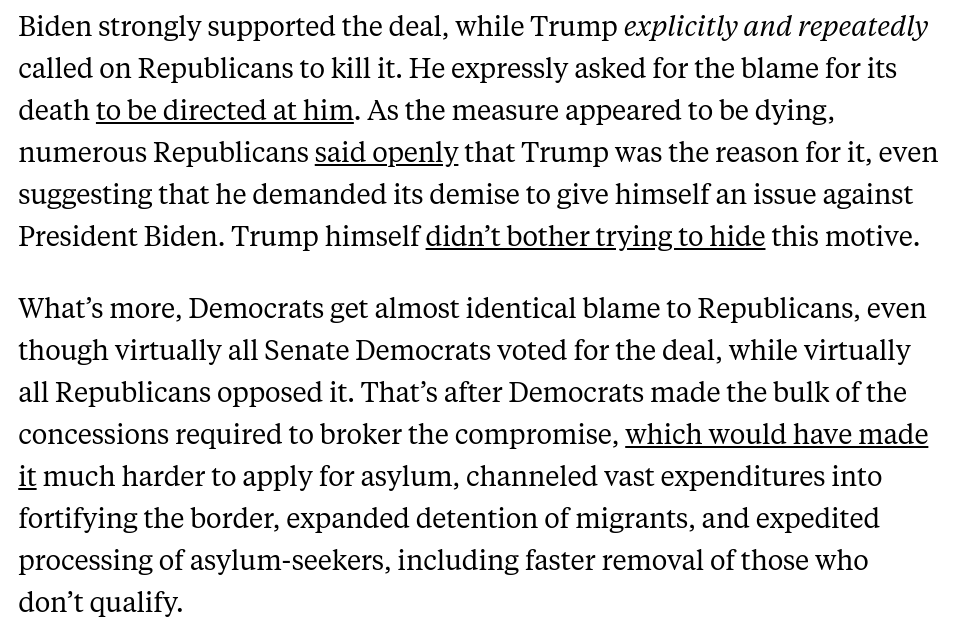 Trump gets far less blame than Biden for killing the deal even though *Republicans themselves* said they were voting it down because Trump told them to. Dems made most the concessions, as @davidfrum noted. Trump himself said he wanted it as an issue. 2/