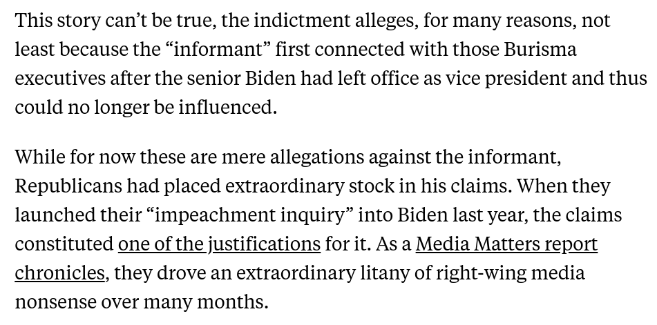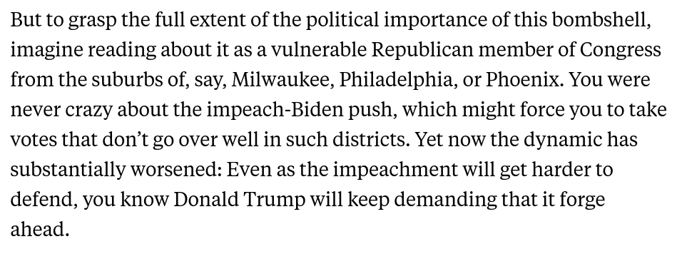 As we watch the GOP case for impeaching Biden implode along with their chief "informant," keep this in mind: Trump is going to *demand* that House Republicans go through with the impeachment no matter how ludicrous the case gets. 1/