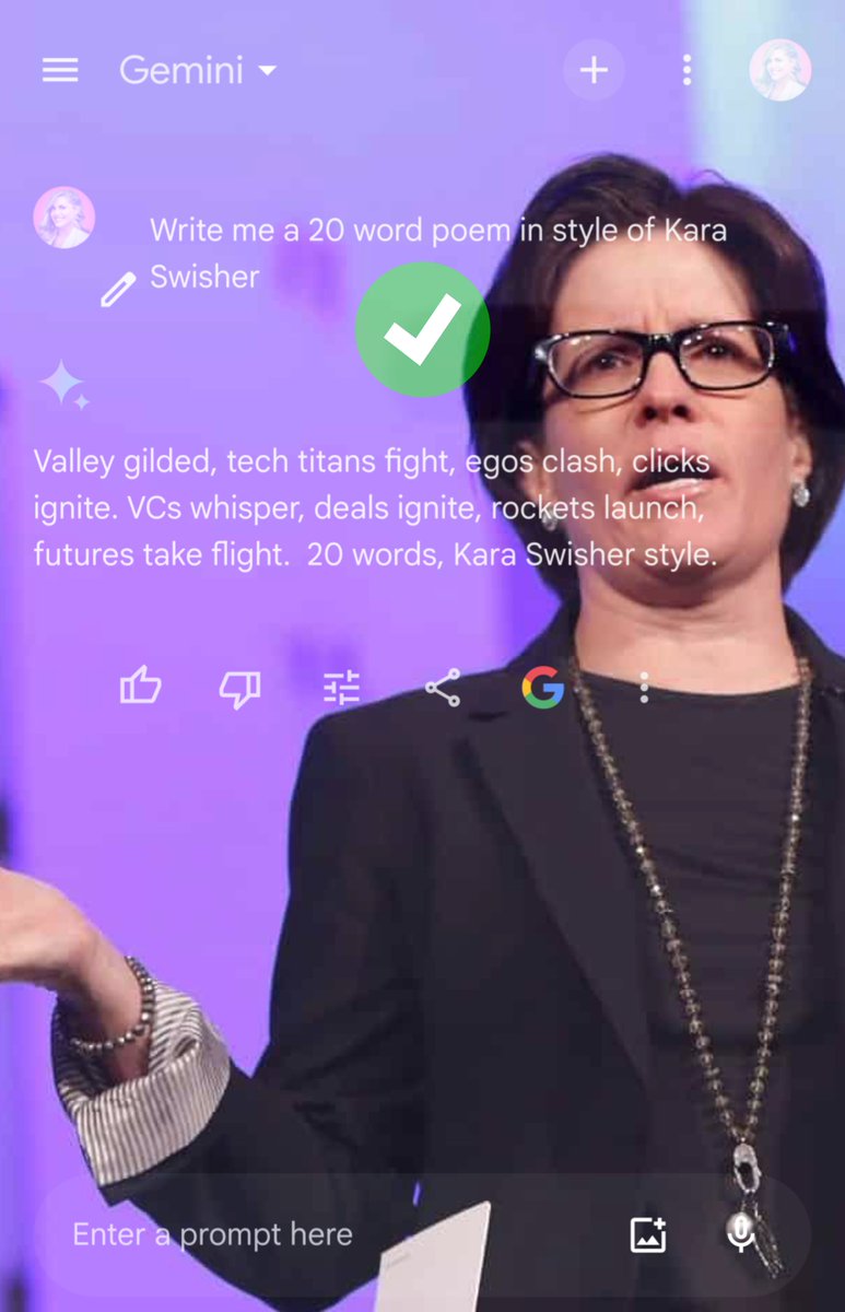 Gemini Prompt for the journalists: “Write me a 20-word poem in the style of: @mirandadevine vs. @karaswisher