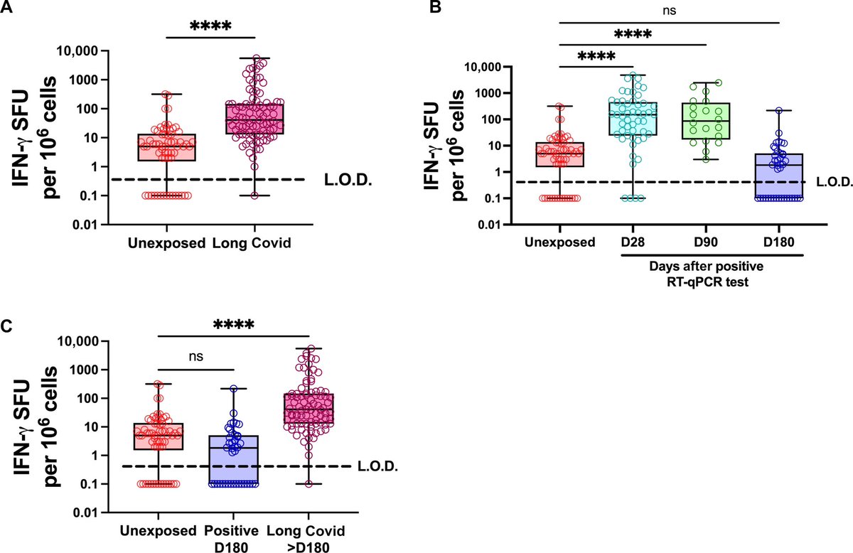 A new study detected persistently high levels of interferon-γ (IFN-γ) from peripheral blood mononuclear cells of patients with LongCovid using highly sensitive assays. 1/