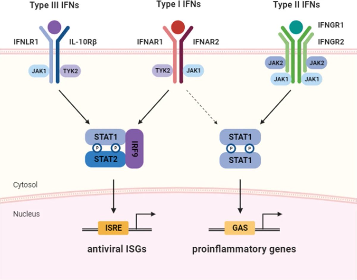 In addition, studies illustrated that type-I IFN could upregulate the expression of ACE2 expression, which may aggravate SARS-CoV-2 infection. 2/