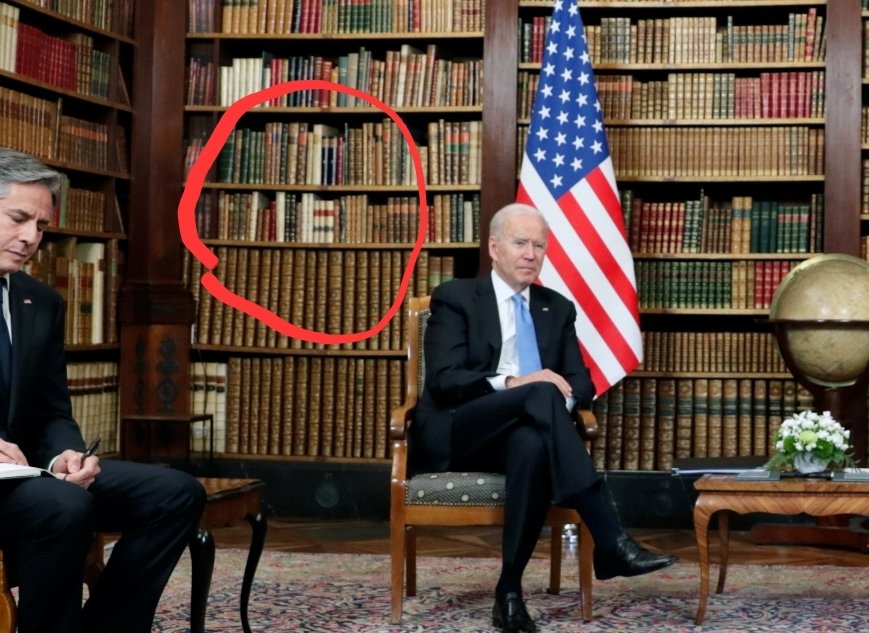 Pictures with MAGA kids, Liar written in the books behind him with Putin.
