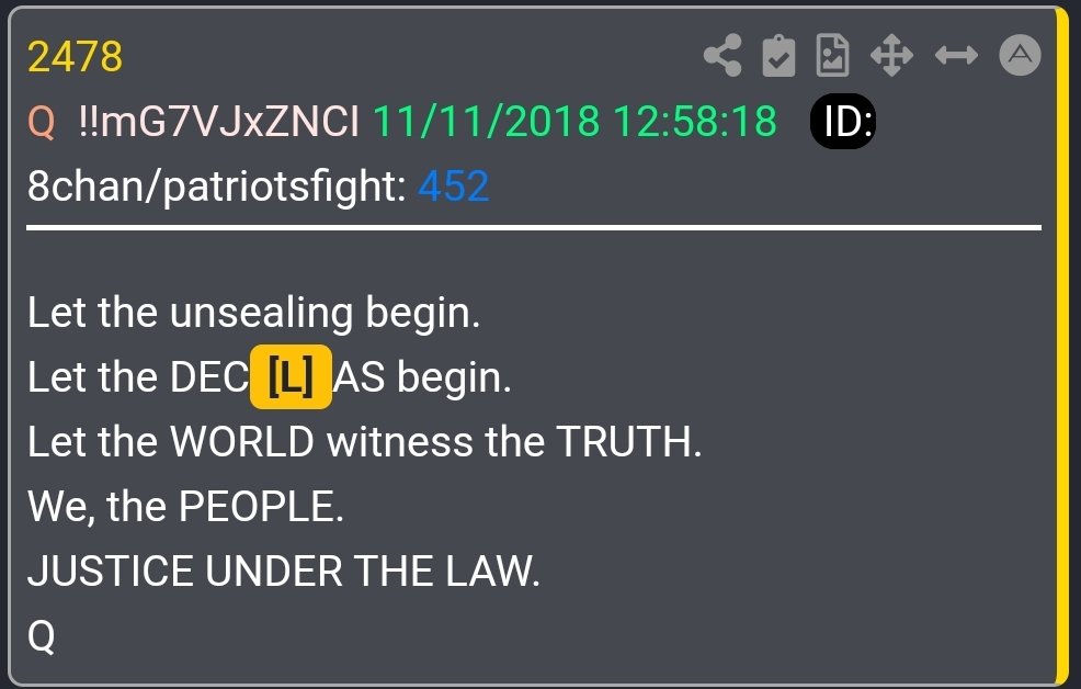 3.) To weaponize we the people. The great awakening. So that we stand against this bipartisan corruption, and infiltration that has taken over and lulled our people into slavery. Think "the PAUSE" ..we will see how bad they have done. So everyone will agree with us. It will be easier to do what must be done. Think "shown not told"